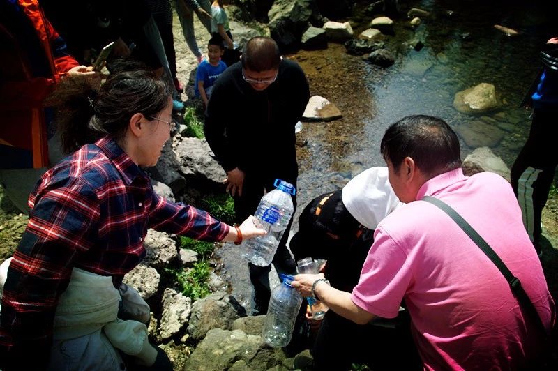 ? ? ? ? 在抵達水源地之前,泉陽泉的工作人員便讓所有的吉大師生準備好空瓶子或者是空杯子,在水源地的泉眼處接上一瓶直接從地下涌出的礦泉水,感受純純的、大自然的味道。